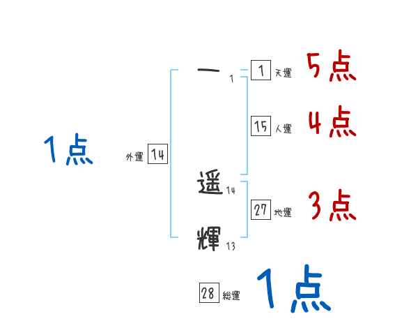一遥輝さんの画数の鑑定結果