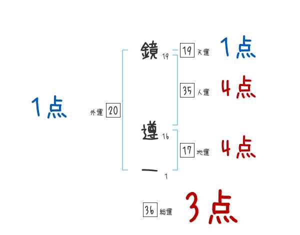 鏡遵一さんの画数の鑑定結果