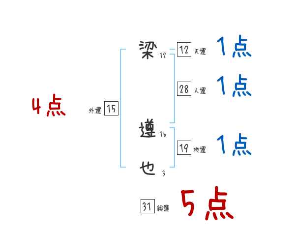 梁遵也さんの画数の鑑定結果