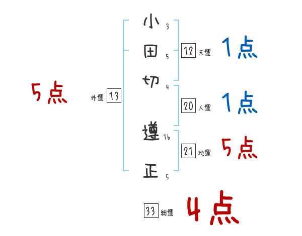外運![]() | 小田切遵正さんの外運は13画の5つ星!才能に恵まれ人気がある。名声を手に入れる。円満な人生。 生活面を象徴する運勢です。外部から受ける影響力を表し、結婚運、家庭運や職場、環境への順応性を表します。 |