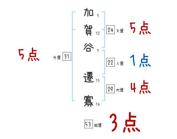 加賀谷遷寡さんの画数の鑑定結果