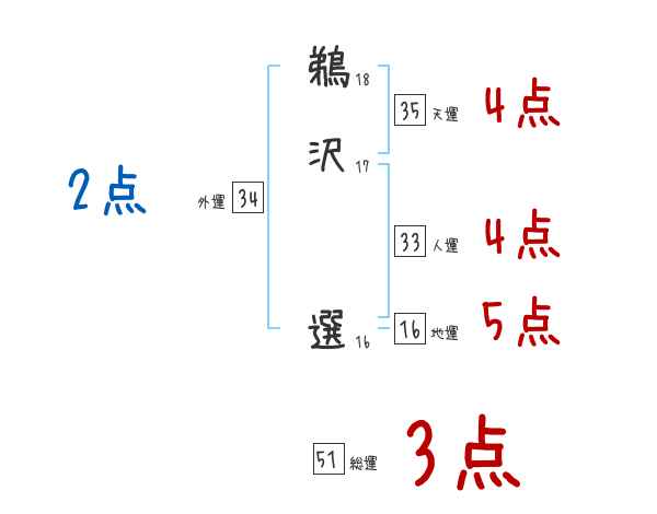 鵜沢選さんの画数の鑑定結果