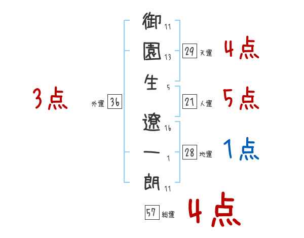 御園生遼一朗さんの画数の鑑定結果