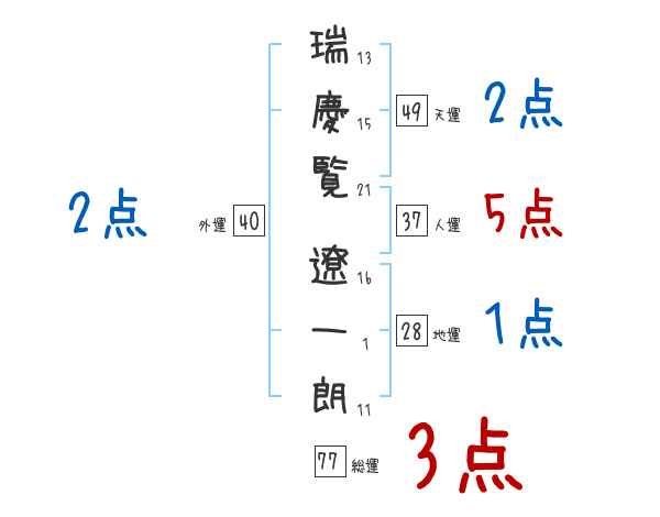 瑞慶覧遼一朗さんの画数の鑑定結果