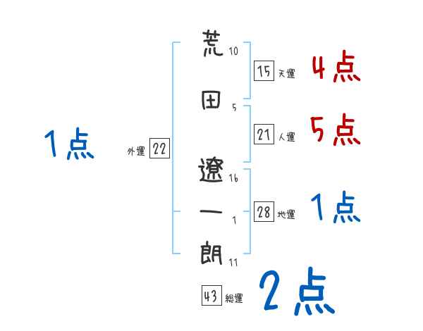 荒田遼一朗さんの画数の鑑定結果