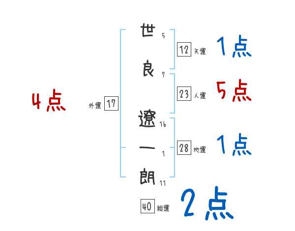 外運![]() | 世良遼一朗さんの外運は17画の4つ星!積極的な行動力。地位を気づき財産を手に入れる。純粋な心と直感力。 生活面を象徴する運勢です。外部から受ける影響力を表し、結婚運、家庭運や職場、環境への順応性を表します。 |