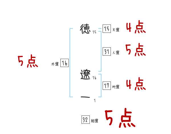 徳遼一さんの画数の鑑定結果