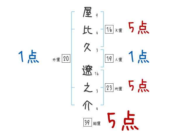 屋比久遼之介さんの画数の鑑定結果