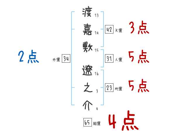 渡嘉敷遼之介さんの画数の鑑定結果