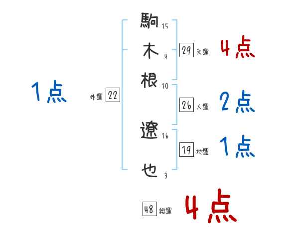 駒木根遼也さんの画数の鑑定結果