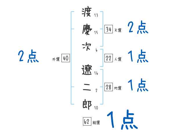 渡慶次遼二郎さんの画数の鑑定結果