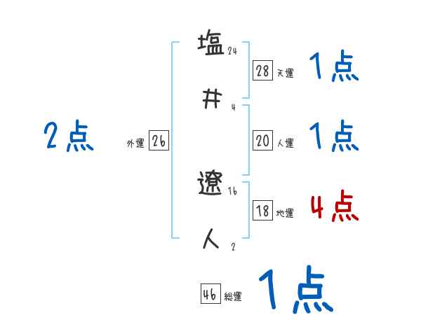 塩井遼人さんの画数の鑑定結果