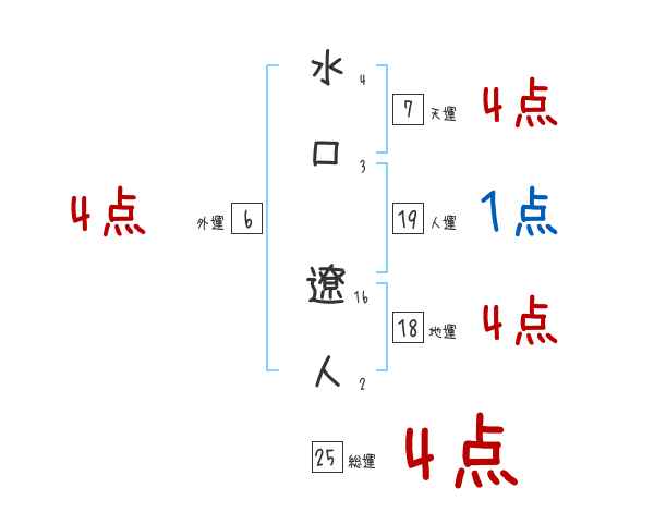 天運![]() | 水口遼人さんの天運は7画の4つ星!強い意志や信念を持ち独立心が強い。自立する。 家系が持つ宿命的な運勢を表します。祖先から受け継いだ苗字ですので自分の力が及びません。家柄を象徴します。 |