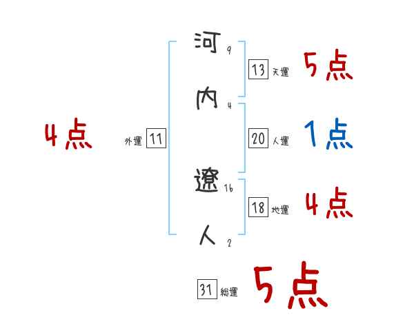 河内遼人さんの画数の鑑定結果