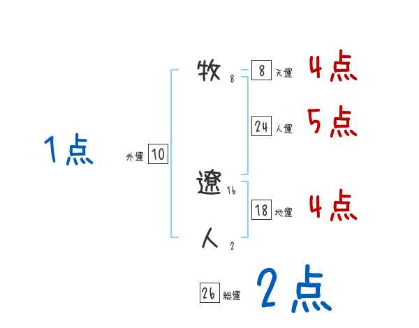総運![]() | 牧遼人さんの総運は26画の2つ星!波瀾万丈かも。信頼できる人を大事にしましょう。 あなたの人生を表す1番重要な運勢です。生涯を通じて影響する総合運となり、主に50歳以降の晩年期に影響を及ぼします。 |