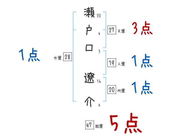 瀬戸口遼介さんの画数の鑑定結果