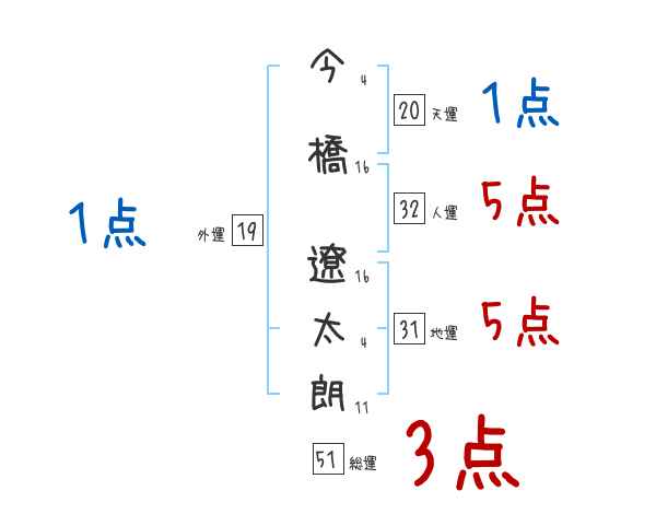 今橋遼太朗さんの画数の鑑定結果