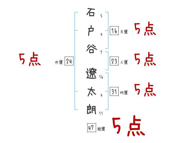 石戸谷遼太朗さんの画数の鑑定結果