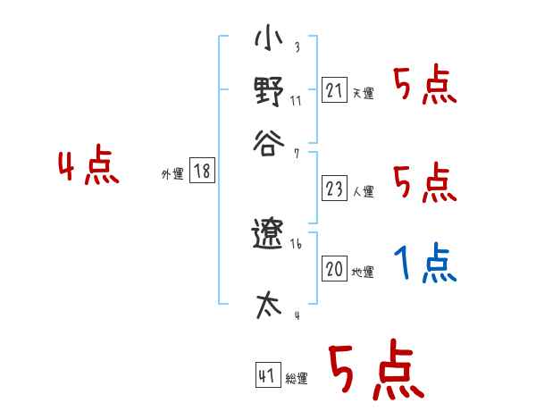小野谷遼太さんの画数の鑑定結果