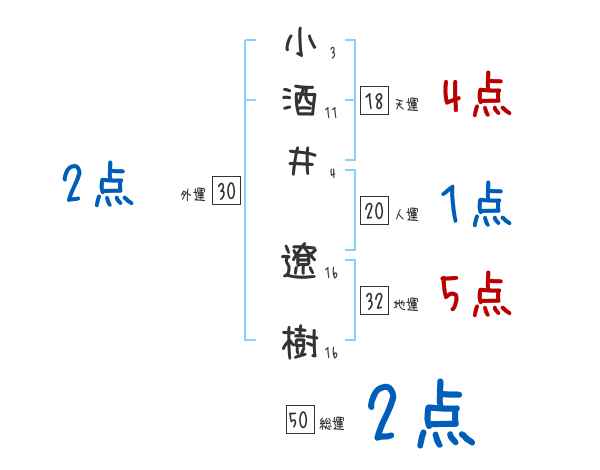 外運![]() | 小酒井遼樹さんの外運は30画の2つ星!浮き沈みの激しさに注意しましょう。 生活面を象徴する運勢です。外部から受ける影響力を表し、結婚運、家庭運や職場、環境への順応性を表します。 |