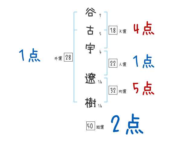 谷古宇遼樹さんの画数の鑑定結果