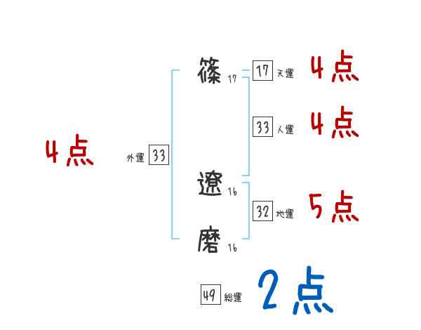 篠遼磨さんの画数の鑑定結果