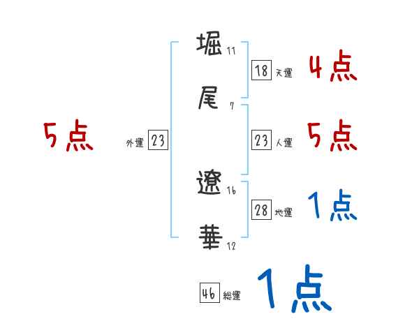 堀尾遼華さんの画数の鑑定結果