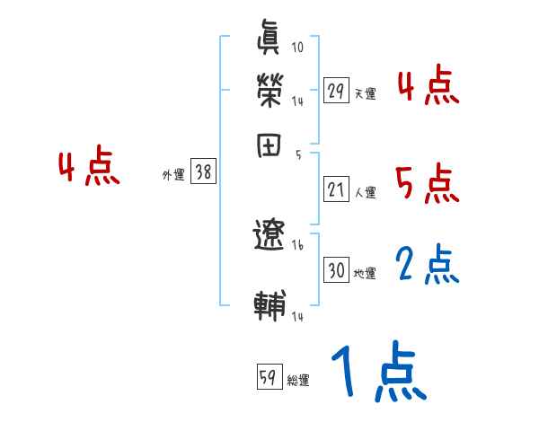天運![]() | 眞榮田遼輔さんの天運は29画の4つ星!完全主義で才能がある。厳格な心の持ち主。 家系が持つ宿命的な運勢を表します。祖先から受け継いだ苗字ですので自分の力が及びません。家柄を象徴します。 |