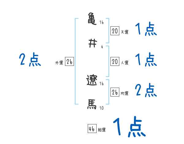 亀井遼馬さんの画数の鑑定結果