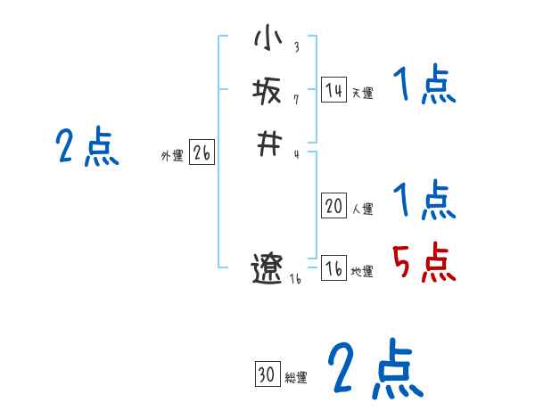 小坂井遼さんの画数の鑑定結果