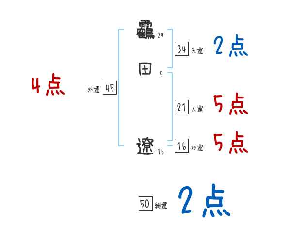 靏田遼さんの画数の鑑定結果