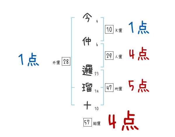 外運![]() | 今仲邏瑠十さんの外運は28画の1つ星!家庭環境に注意。スポーツで活躍できる能力があるかも。 生活面を象徴する運勢です。外部から受ける影響力を表し、結婚運、家庭運や職場、環境への順応性を表します。 |