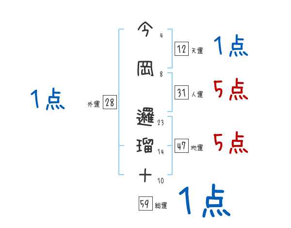 今岡邏瑠十さんの画数の鑑定結果