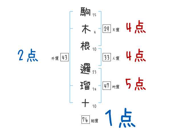 駒木根邏瑠十さんの画数の鑑定結果