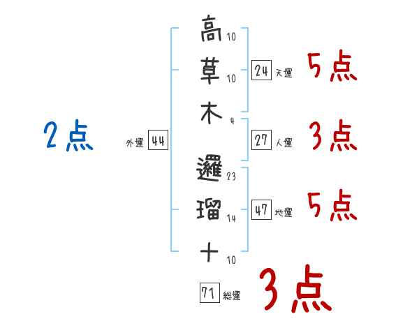 高草木邏瑠十さんの画数の鑑定結果