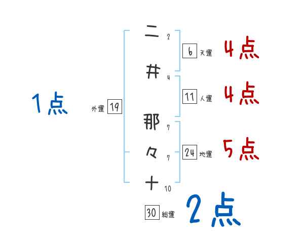二井那々十さんの画数の鑑定結果