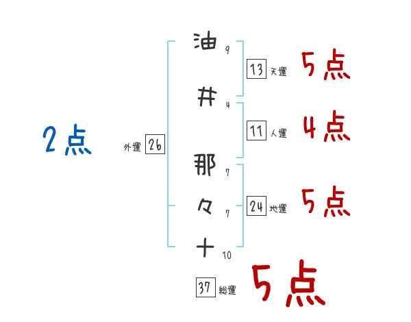 油井那々十さんの画数の鑑定結果
