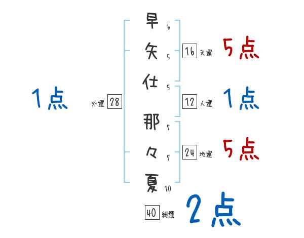 早矢仕那々夏さんの画数の鑑定結果