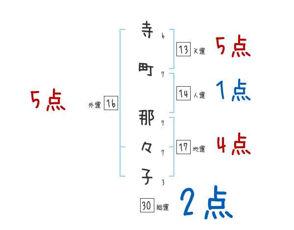 寺町那々子さんの画数の鑑定結果