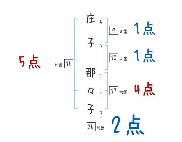 庄子那々子さんの画数の鑑定結果