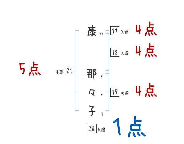 康那々子さんの画数の鑑定結果