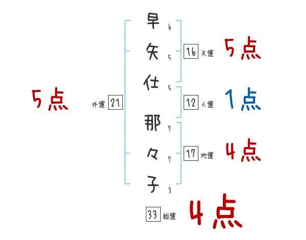 早矢仕那々子さんの画数の鑑定結果