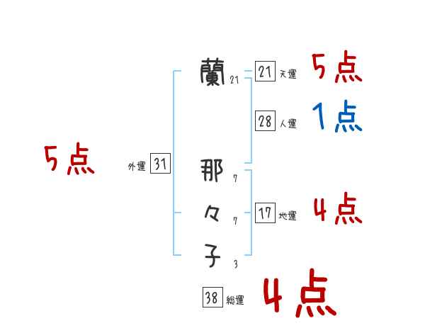 蘭那々子さんの画数の鑑定結果