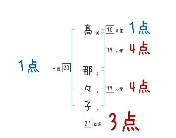 髙那々子さんの画数の鑑定結果