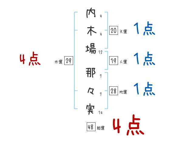 内木場那々実さんの画数の鑑定結果