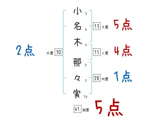 小名木那々実さんの画数の鑑定結果