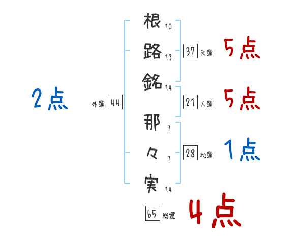 根路銘那々実さんの画数の鑑定結果