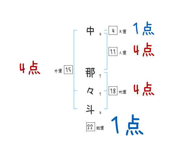 中那々斗さんの画数の鑑定結果