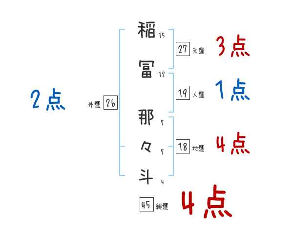 稲冨那々斗さんの画数の鑑定結果