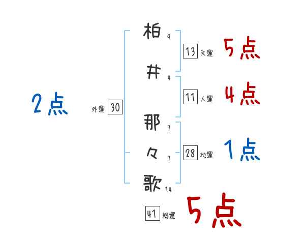 天運![]() | 柏井那々歌さんの天運は13画の5つ星!才能に恵まれ人気がある。名声を手に入れる。円満な人生。 家系が持つ宿命的な運勢を表します。祖先から受け継いだ苗字ですので自分の力が及びません。家柄を象徴します。 |